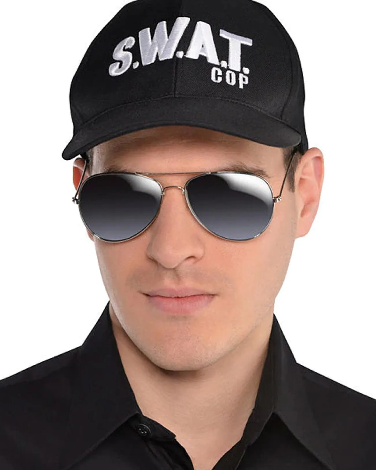 Top Off Your Swat Costume With This Swat Hat! A Simple Yet Effective Accessory For Your Swat Character That Cap Comes In Black And Embroidered On The Front In Large White Bold Letters Is S.W.A.T. Cop. Around The Back Is A Snap Closure For An Adjustable Fit. Top Off With Some Aviator Sunglasses And You’Re Ready To Catch Some Bad Guys.