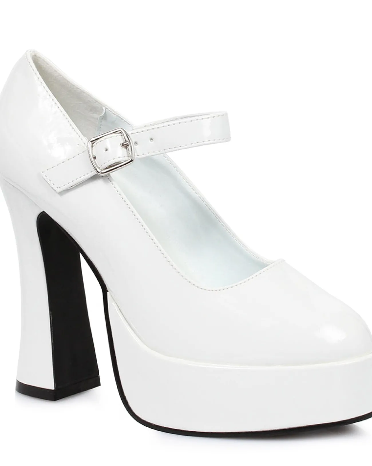 Give Your Costume The Sassy Edge It Needs When You Kick Up Your Heels And Strut Through The Party Wearing A Pair Of These White Eden Patent Chunky Heel Womens Shoes. These Pure White Chunky Platform Heels Will Match Almost Any Costume, With Their Stylish Shiny Patent White Leather Finish, High Platform On The Front For Extra Height. To Secure The Shoes In Place, These Platform Heels Also Feature An Adjustable Strap With A Buckle Fastening. Pair Up With Our Selection Of Hosiery For A Complete Look.