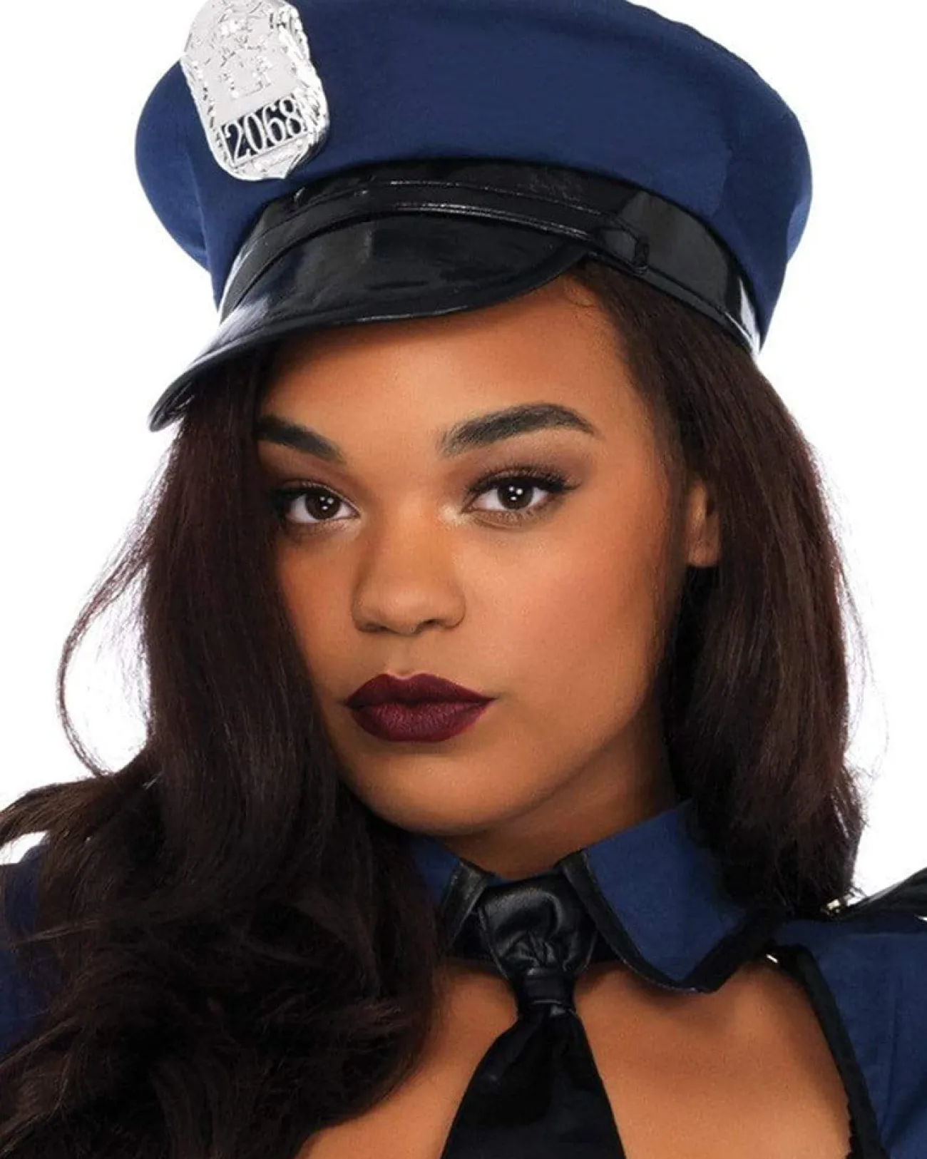 Become A Woman In Blue With Our Flirty Cop Womens Plus Size Costume. This All-In-One Cop Costume Features A Short Navy Blue Dress With A Fitted Top With A Zipper Front And A Flared Skirt. The Top Has A Police Badge And Logo Detailing Above 2 Faux Pockets. The Costume Also Comes Complete With A Black Belt, Necktie, Police Hat And Of Course Handcuffs. No One Will Be Able To Resist You. Great As A Uniform Costume Idea This Halloween.