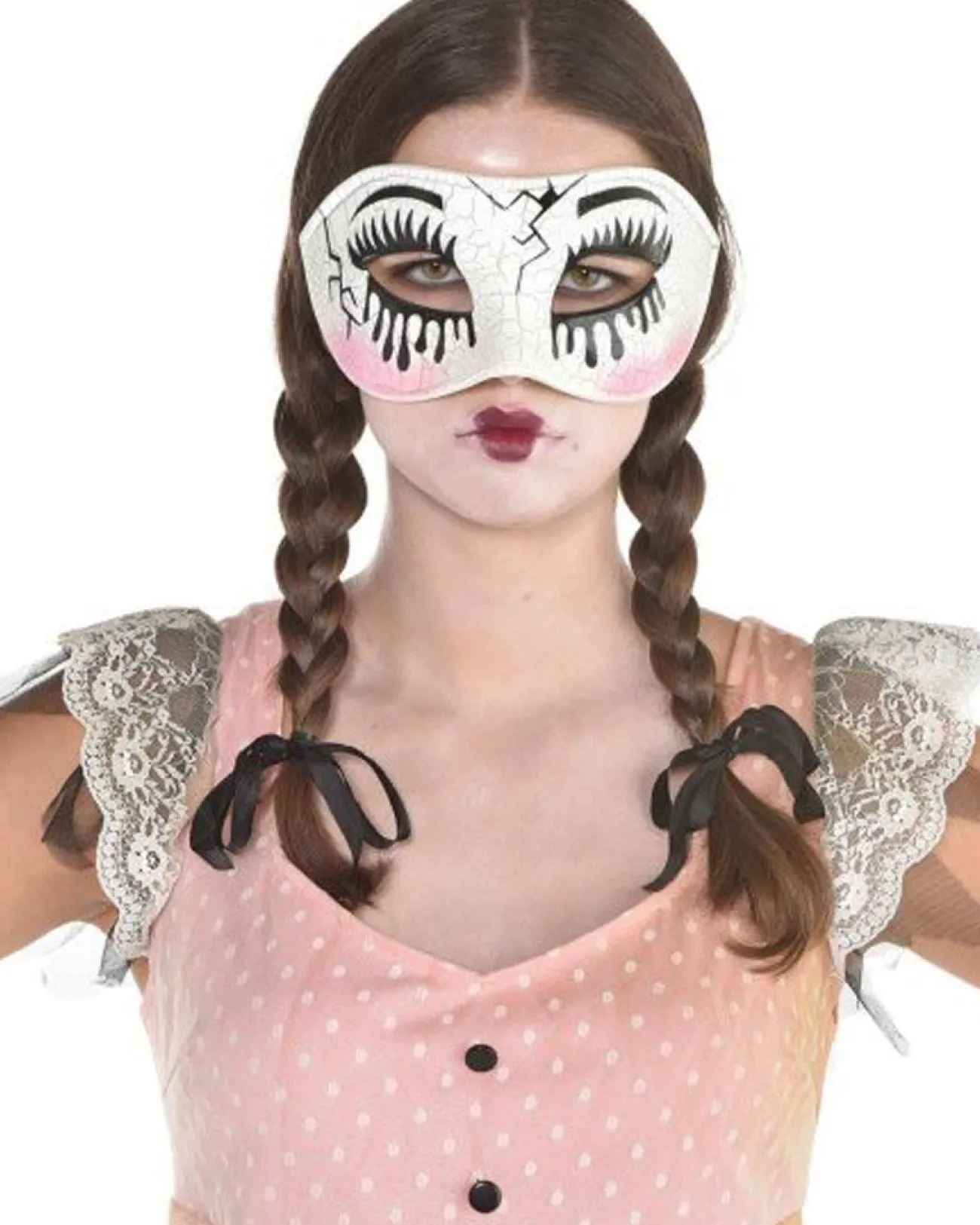 Add That Final Creepy Touch To Your Halloween Costume With This Creepy Doll Eye Mask. The Mask Is White With Cracking Detail, Blush Marks And Running Makeup Detail So You’Ll Look Just Like A Discarded Doll Back To Haunt Its Former Owner. Perfect For Halloween.