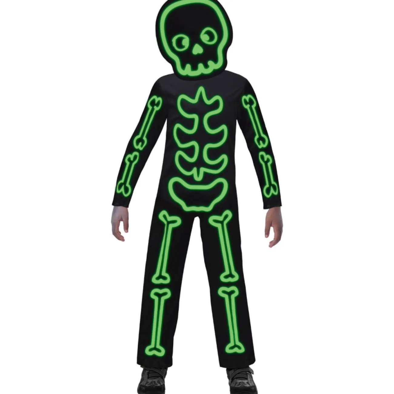 When Your Trick Or Treating Everyone Will Be Able To See How Scary You Look Wearing Our Glow In The Dark Stick Skeleton Kids Costume. Featuring A Black Glow In The Dark Jumpsuit Styled With A Green Fluro Skeleton Print. The Costume Comes Complete With A Matching Mask.