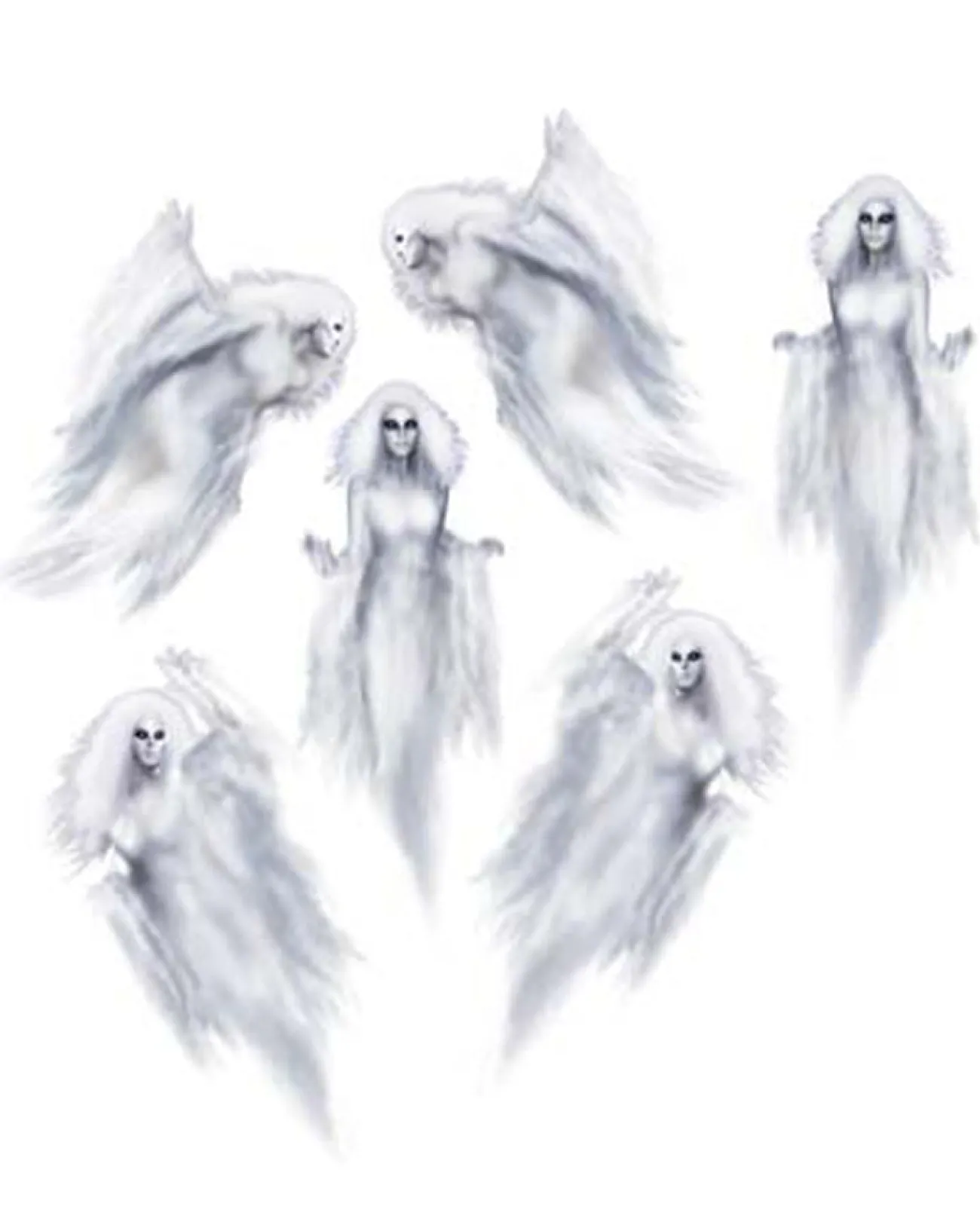 Let The Undead Join In On Your Halloween Party With These Ethereal Ghosts Decorations. This Pack Features 6 Ghosts On Thin Plastic Material That Are Sure To Start Off Your Spine-Tingling Decorations! Attach To Your Walls, Windows And Doors With Sticky Tape Or Blu Tack.