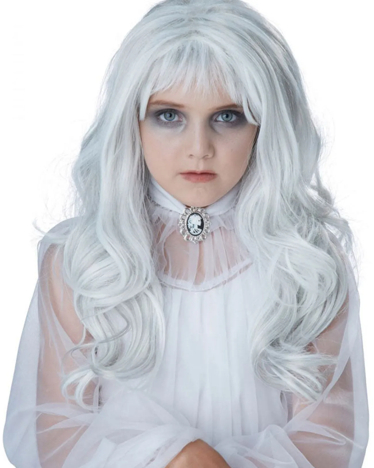 Look Like You Have Come Back From The Dead With This Spooky Ghost Grey Girls Wig. This Wig Is Made Of Synthetic And Features Long Flowing Grey Hair. Wear A Wig Cap Underneath To Keep Your Own Hair Under Wraps And For Extra Comfort.