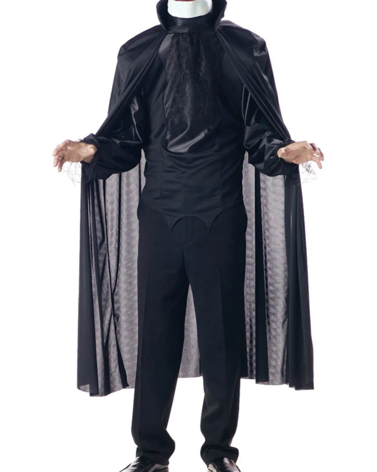 A Haunting Costume For Any Occasion, This Headless Horseman For Men Has Inflatable Shoulders To Prop The Torso Up Higher So You Can Look Through The Neck. The Costume Includes A Vest With Sleeves Built-In, A Cape With Ascot, And A Headpiece To Give The Illusion Of Having Lost Your Head!