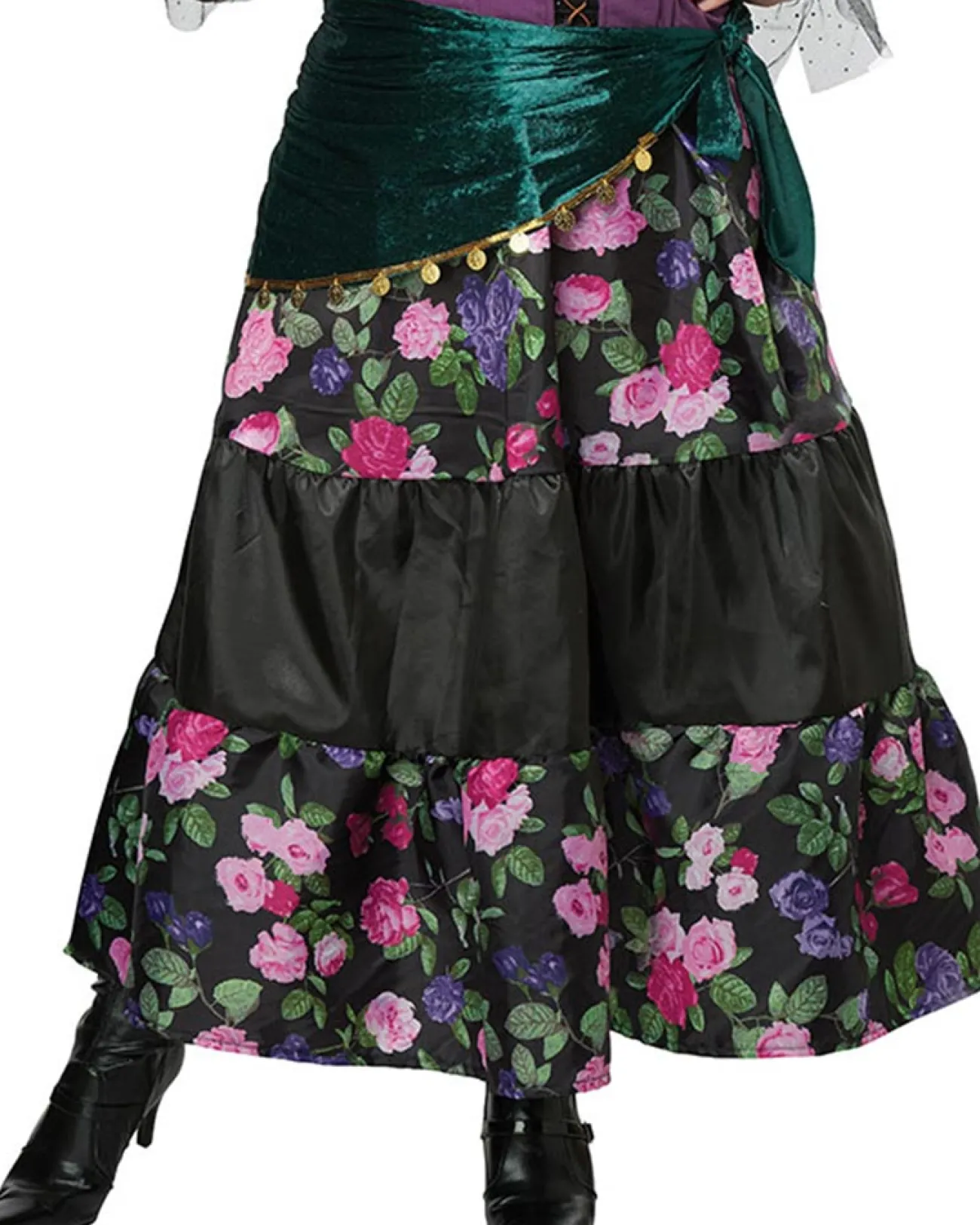 By Fortunes Foretold And Hardships Unnumbered. Step Right Up! Show Off Your Skills Of The Sight When You Wear This Mystical Charmer Plus Size Womens Costume To Your Next Halloween Or Fancy Dress Party. The Costume Comes Complete With An Off The Shoulder Sequin Black Mesh Shirt With An Attached Purple Vest With Orange Lacing Down The Bodice. A Long Flowing Black Skirt With A Purple Floral Pattern, A Turquoise Velour Sash That Ties Around The Hips, A Matching Black And Purple Floral Headband And 6 Tarot Cards. Impress Your Friends And Family As You Hone In On Your Skills As You Have Seen Into The Future.