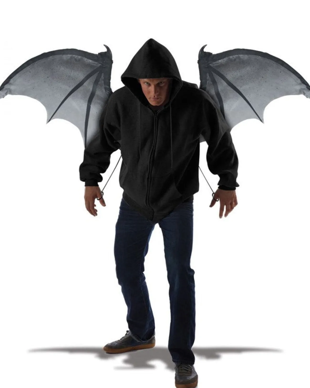 These Wicked Black Bat Wings Are A Great Accessory For Halloween. These Black Fabric Wings Are Attached To A Harness And When The Attached Strings Are Pulled It Lets You Spread Them As Wide As 4Ft./1.22M In Span.