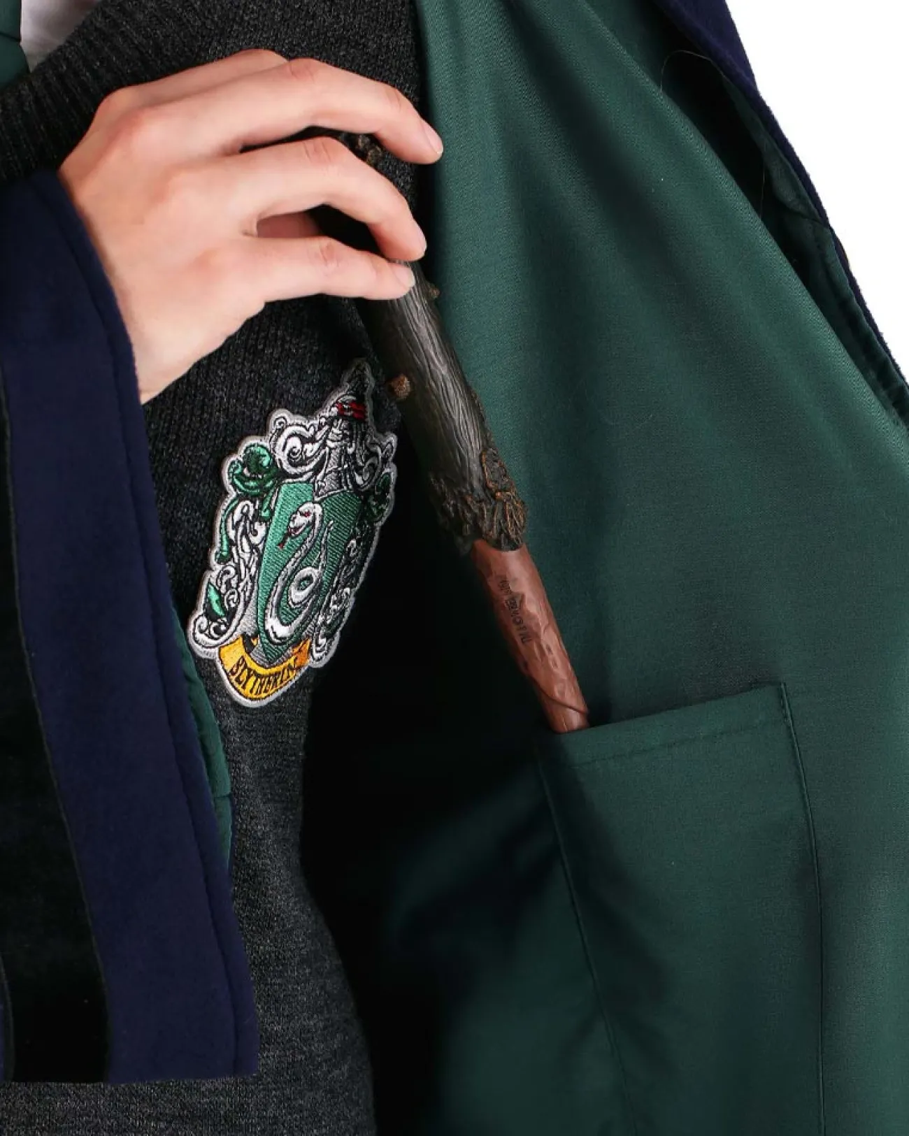 Embrace Your Slytherin Values With This 1920S Hogwarts Slytherin Adult Robe. Included Is A Premium, Specially Licensed Harry Potter Robe In Navy Blue. Robe Is Fully Lined In Slytherin Green, With A Large Hood, Metal Chain And Clasp Closure At The Neck, Black Velvet Stripe Detail On The Sleeves, And An Applique Slytherin Crest. This High Quality, Vintage-Style Robe Will Be A Delight To Wear For All Harry Potter Fans Who Identify As House Slytherin. It Even Has A 25Cm (10 Inch) Wand Pocket Sewn Into The Left Front Panel Lining! You’Ll Be Ready For Any Magical Adventure–Just Add A Wand And A Prideful, Ambitious And Cunning Attitude.