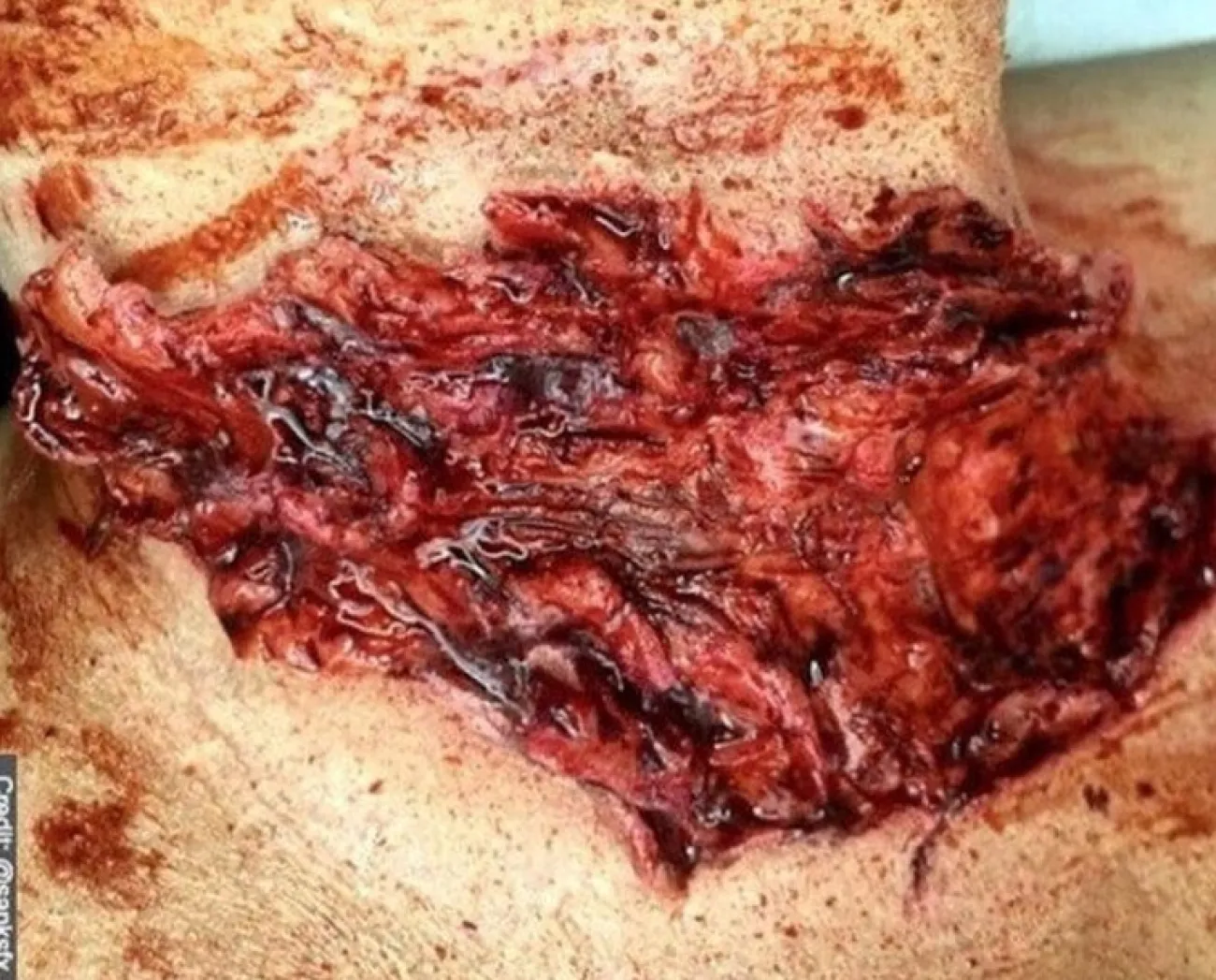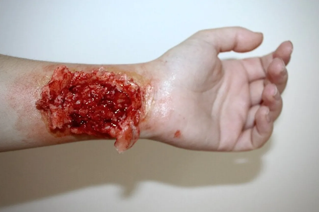 Encapsulated Silicone Prosthetic Wound Made By Forensicfx Studios. This Prosthetic Piece Is Specifically Designed To Be Used In The Special Effects Makeup Industry. Apply This Piece For Hyper Realistic Simulation Of An Opened Wound.