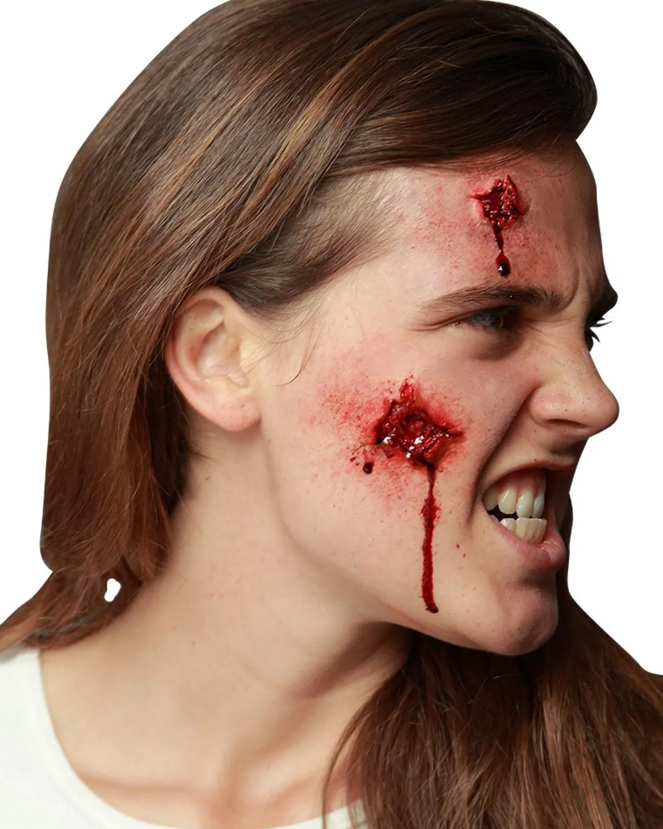 Step Up Your Halloween Makeup This Year And Apply This Open Wound Prosthetic. This Gruesome Piece Is Designed To Look As Though You’Ve Had A Pretty Painful Hit In Two Places. The Detailing Includes An Exposed Wound With Exposed Flesh. To Keep The Prosthetic On Place By Adding Spirit Gum To The Back Until It Becomes ‘Tacky’ And Then Place Onto Your Desired Spot. For Extra Effect, Add A Splattering Of Fake Blood. Check Out Our Other Special Effects Makeup And See What Other Prosthetic’s You Can Pair Up With This Messy Wound.