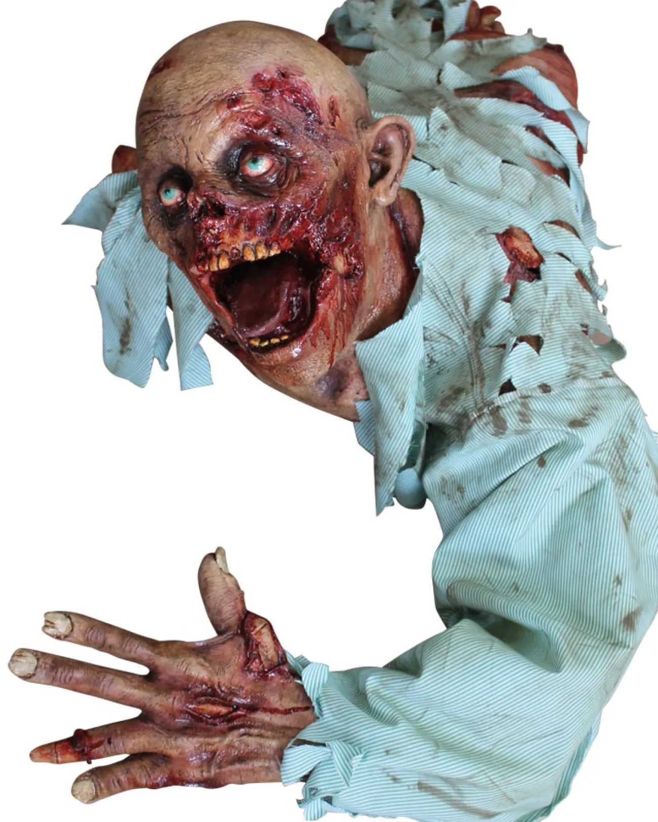 Your Zombie Party Won’T Be The Same Without Our The Crawler Premium Zombie Prop Making Its Way Through The Guests. The Scene Setter Features A Zombie Prop Measuring 1M Long. This Well-Made Prop Is Made From Latex And Is In The Shape Of A Crawling Zombie Torso; Chest, Arm And Head. The Zombie Is Styled With A Grotesque Festering Face With A Wide Open Jaw, Ready To Devour Anything In Its Path, Wearing A Ripped Blue Shirt And Only One Arm With A Disfigured Ring Finger.