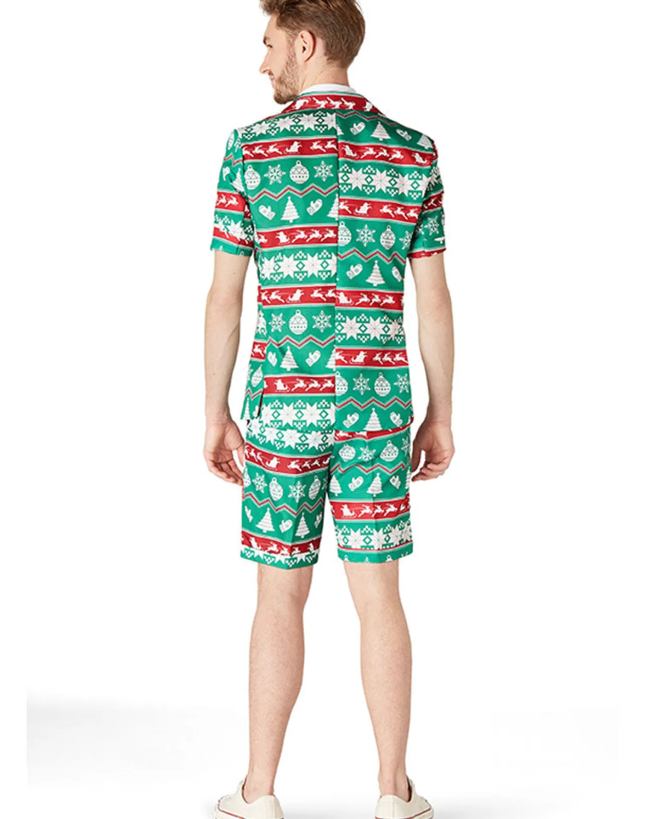 This Christmas Turn Up To Your Christmas Party Wearing Our Christmas Green Nordic Mens Summer Suitmeister. Featuring A Stylish Green And Red Suitmeister Including A Jacket, Pants, And Matching Tie Styled With Nordic Christmas Icons. The Jacket Includes 2 Fake Pockets On The Front, One Inside Pocket, 2 Front Pockets, And 1 Back Pocket On The Trousers! Both The Trousers And Jacket Can Be Extended However As The Waist Is Elastic The Elastic Adjusts To The Wearer’s Size, For An Easy Fit!