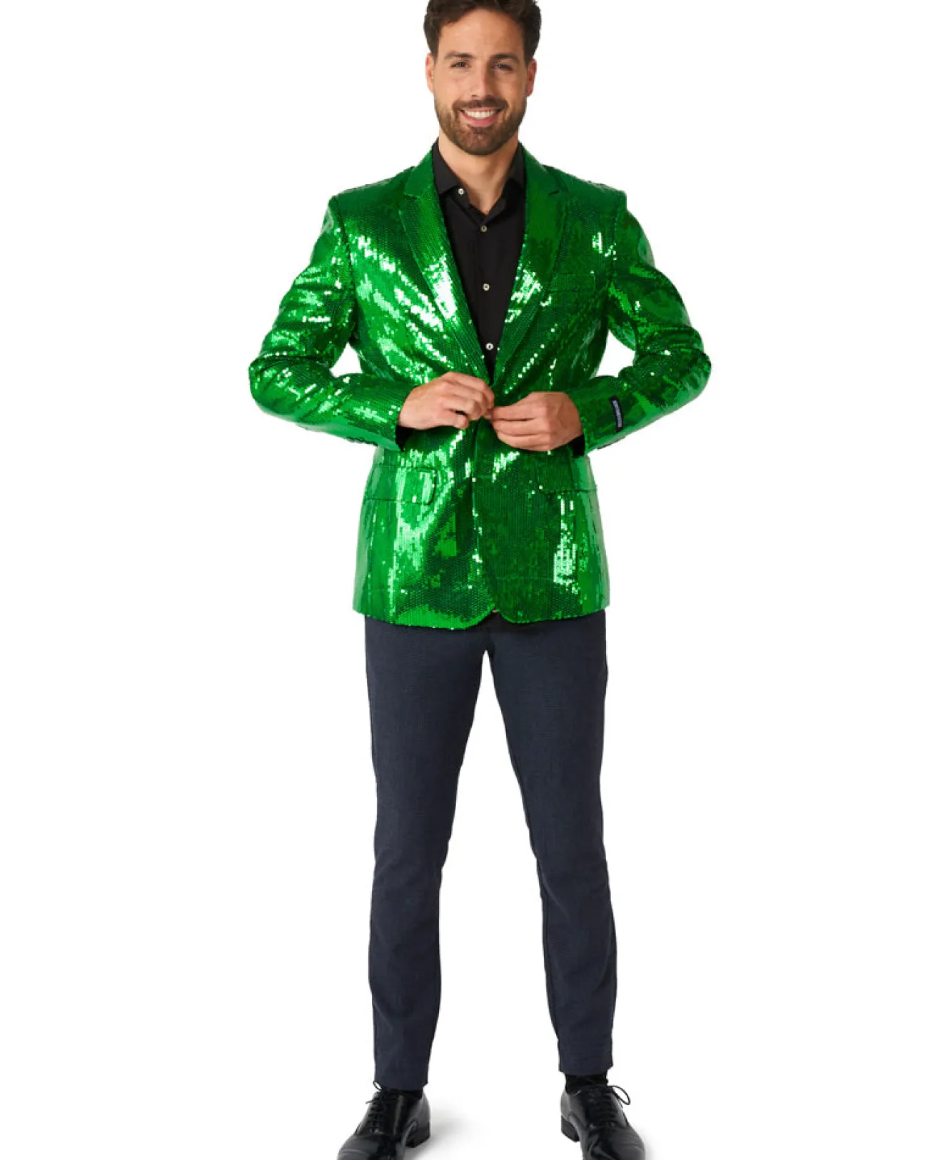 Drink, Eat And Be The Life Of The Party While Wearing Our Sequins Green Mens Suitmeister Jacket. Featuring A Green Sequin Suit Jacket. This Dazzling Jacket Itself Features Fake Pockets On The Outside Of The Jacket And One Pocket In The Inside Of The Jacket And Is Extendable! Pair This Jacket With Other Show Stopping Christmas Or Green Accessories From Our Ranges.