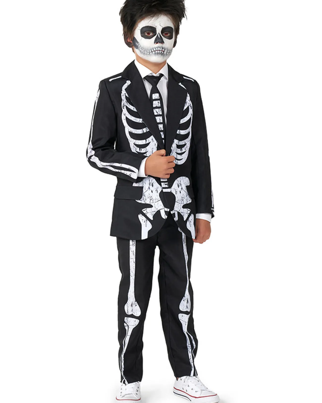 You’Ll Love Our Skeleton Grunge Boys Suitmeister. Featuring A Black Suitmeister With A White Skeleton Print Including Trousers, Jacket, And A Tie. The Jacket Includes 2 Fake Pockets On The Front, One Inside Pocket, 2 Front Pockets, And 1 Back Pocket On The Trousers! Both The Trousers And Jacket Can Be Extended However As The Waist Is Elastic The Elastic Adjusts To The Wearer’s Size, For An Easy Fit! Great For Dressing Up As This Halloween.