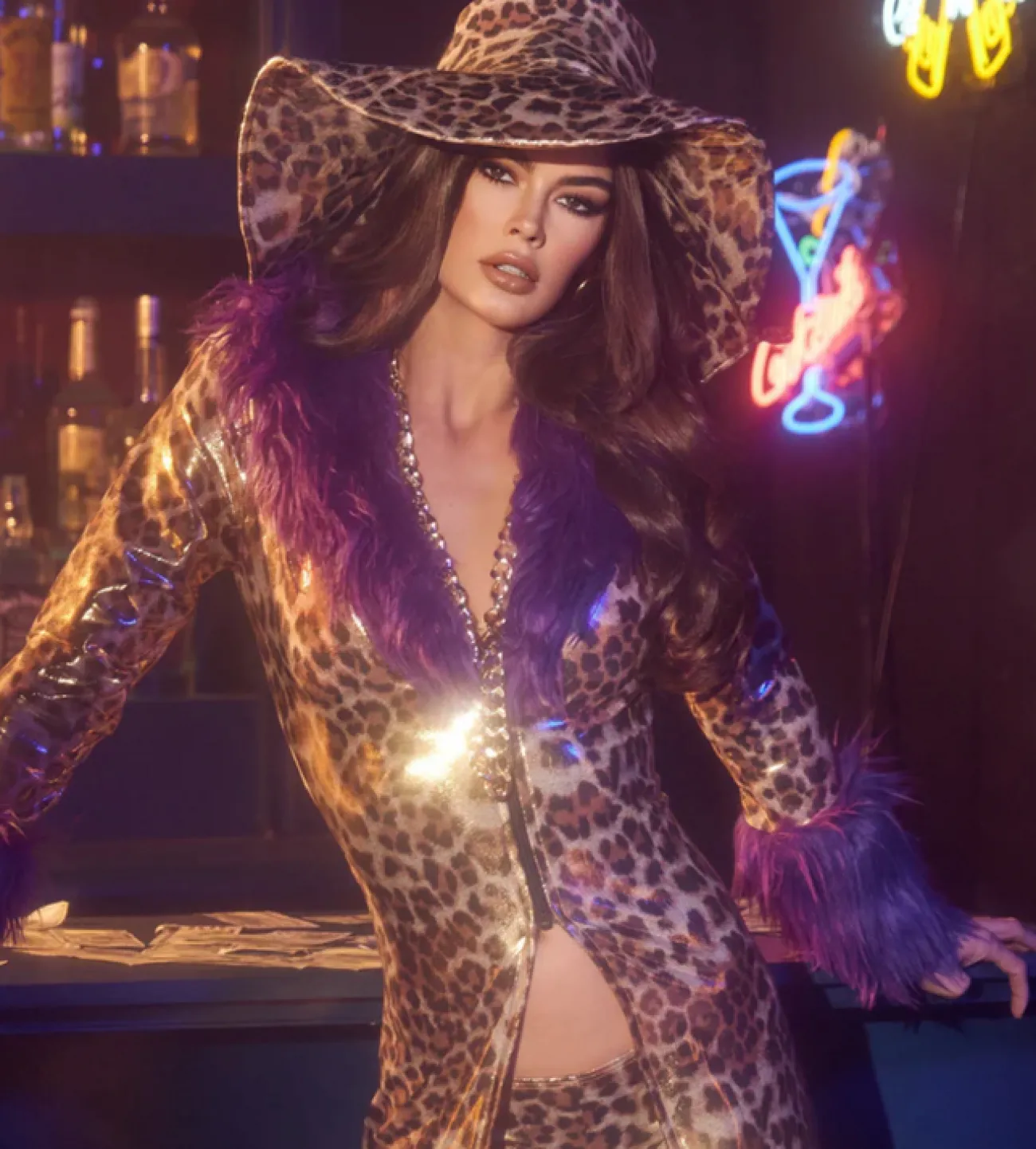 You’Ll Certainly Become The Centre Of Attention While Wearing Our Sweet Mama Pimp Womens Costume. Featuring A Shiny Gold Animal Print Coat With A Front Zipper Closure And Purple Faux Fur Styled On The Lapels And Cuffs. The Costume Comes Complete With A Pair Of Matching Hot Shorts And A Matching Large Floppy Hat. Great As A Sexy Pimp Costume. Complete The Costume With A Cane, Oversized Jewellery And Accessories From Our Pimp Range.