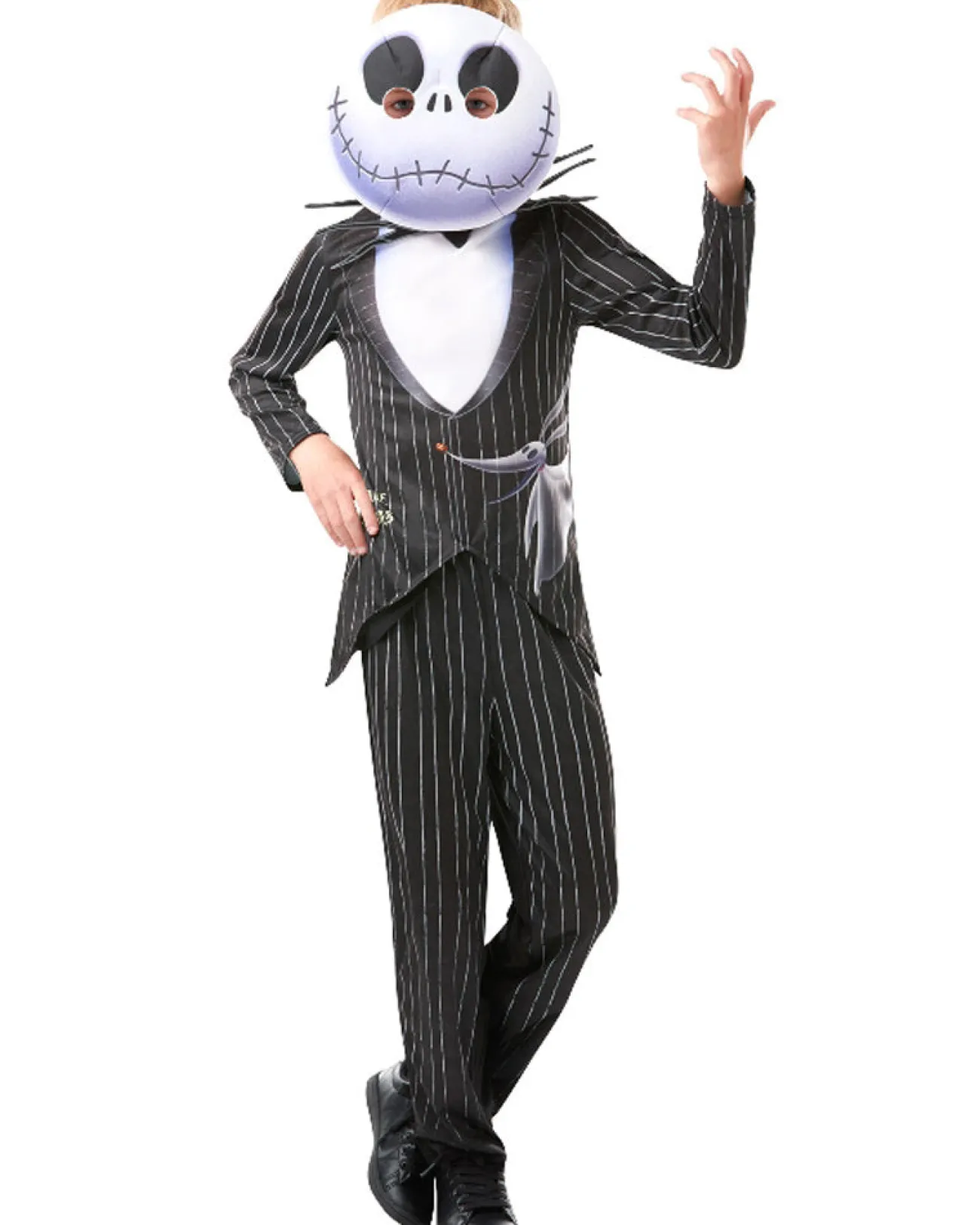 Become The Pumpkin King Of Halloweentown This Halloween, When You Suit Up In This Disney Nightmare Before Christmas Jack Boys Costume. This Much Loved Skeleton With A Heart Of Gold, This Costume Will Have Everyone Singing ‘This Is Halloween’ Song. Costume Comes With A Digitally Printed Shirt That’s Made To Look Like Jack’s Black And White Pinstriped Jacket With Mock Tailcoat And Printed Shirt Front, As Well As Featuring A Digitally Printed Image Of Zero On The Left Hand Side Of The Shirt. A Detachable Black Foam Bowtie In The Shape Of A Bat Is Also Included And A Pair Of Digitally Printed Black And White Pinstriped Pants With An Elastic Waist. Finally, A Soft Foam White Mask With Black Digitally Printed Stitches And Facial Features, Just Like Jack Skellington Is Included To Complete The Costume.