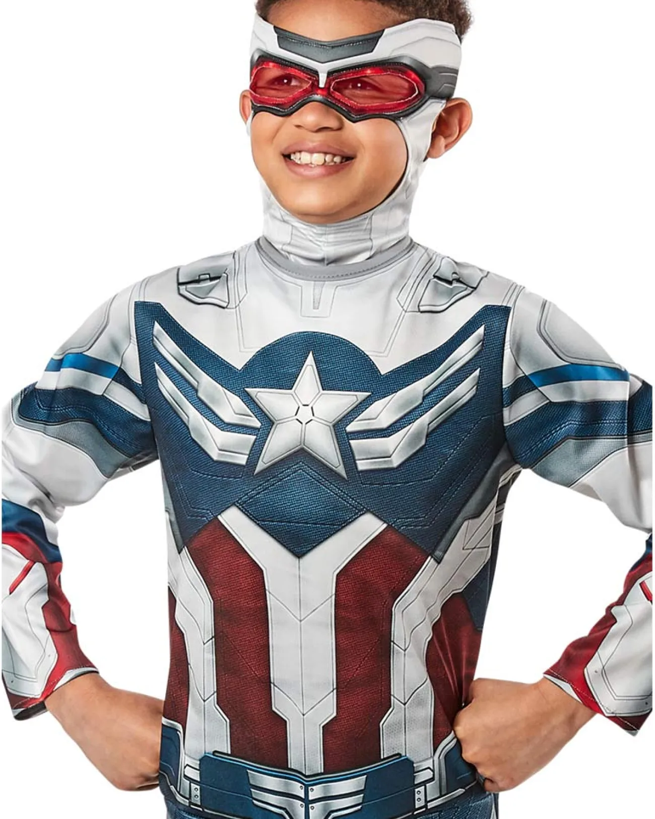 Join The Winter Soldier To Defeat Karli And The Dark Captain America With Our Falcon And The Winter Soldier Captain America Value Kids Costume. Featuring The New Captain America Costume Worn By The Falcon, Straight From The Falcon And Winter Soldier Tv Series. Including A Digitally Printed Jumpsuit Coloured In The Classic Red, Blue And White Symbols But With A Falcon Twist! The Costume Has A Holographic Star Logo On The Chest And Is Made From A Wet Look Fabric. What’s More, It Comes With A Headpiece With Red Mesh Material Over The Eyes. Who Needs The Super Soldier Serum!