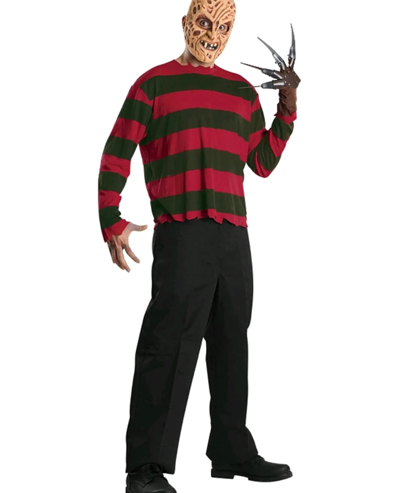 Invade People’s Dreams This Halloween With Our Freddy Krueger Shirt And Mask Adult Costume. The Terrifying Costume Is An Officially Licensed Freddy Krueger Costume Including An Iconic Red And Green Shirt And A Half Mask With Printed Burns All Over!