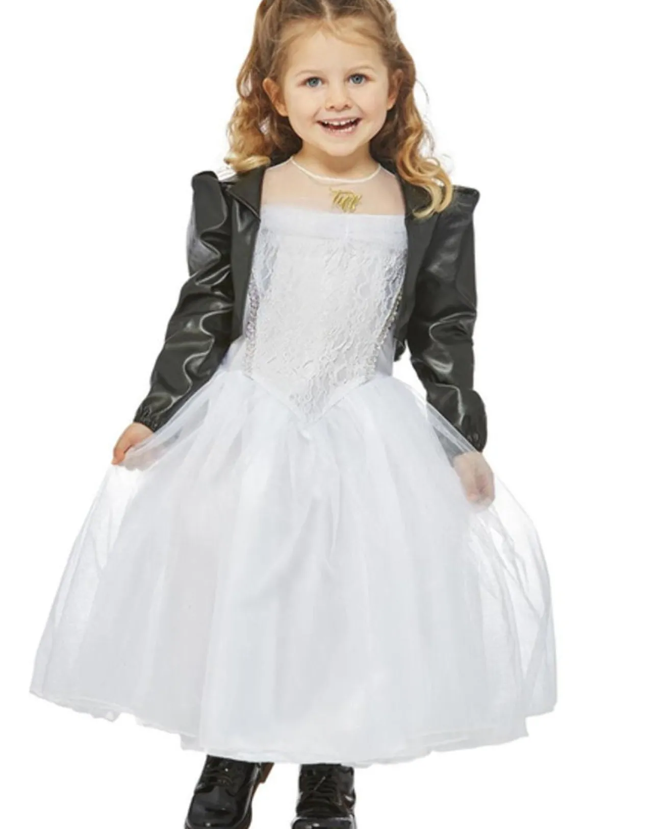 Dress Up Your Little One This Halloween With Our Bride Of Chucky Tiffany Toddler And Girls Costume. Featuring A Long White Dress And A Black Leather-Like Jacket. Inspired By The Creepy Doll From The Horror Series Chucky. Just Don’T Let Them Watch The Movie!