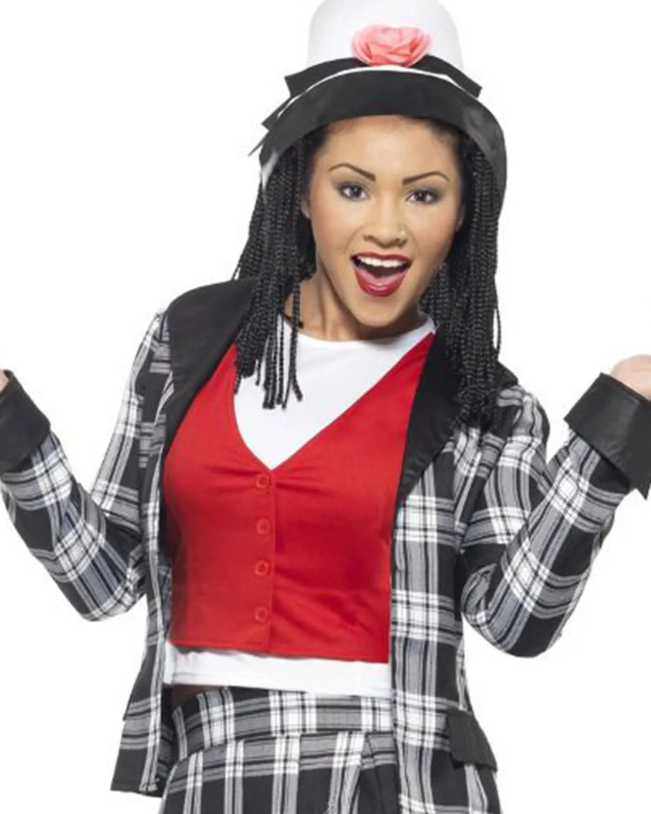 Nothing Speaks The 90S Than The Hilarious 1995 Teen Flick Clueless. So Dress In This Clueless Dionne Womens Costume, Grab Your Flip Phone And Let’s Go Shopping With Your Best Friend Cher. This Iconic Costume Is Based Off The Outfit Worn By Dionne And Features A Black And White Plaid Pattern Blazer Style Jacket With Black Lapels And Cuffs, A White Top With Attached Red Cardigan With A Low V Neck And Four Red Buttons. A Matching Black And White Plaid Mini Pleated Skirt With Silver Faux Safety Pins On The Front And It Wouldn’T Be The 90S Without A Pair Of Black Over The Knee Sock. It Wouldn’T Be Dionne Without Her Fashion Headwear, Which Is Why The Costume Also Includes A White Hat With Black Rim, A Large Ribbon On The Front And A Light Pink Fake Rose. Channel Your Inner Dionne Or Any 90S High School Girl As You Flip Your Hair Back And Grab Your Bff As You Enjoy The Sun In Sunny Beverly Hills.