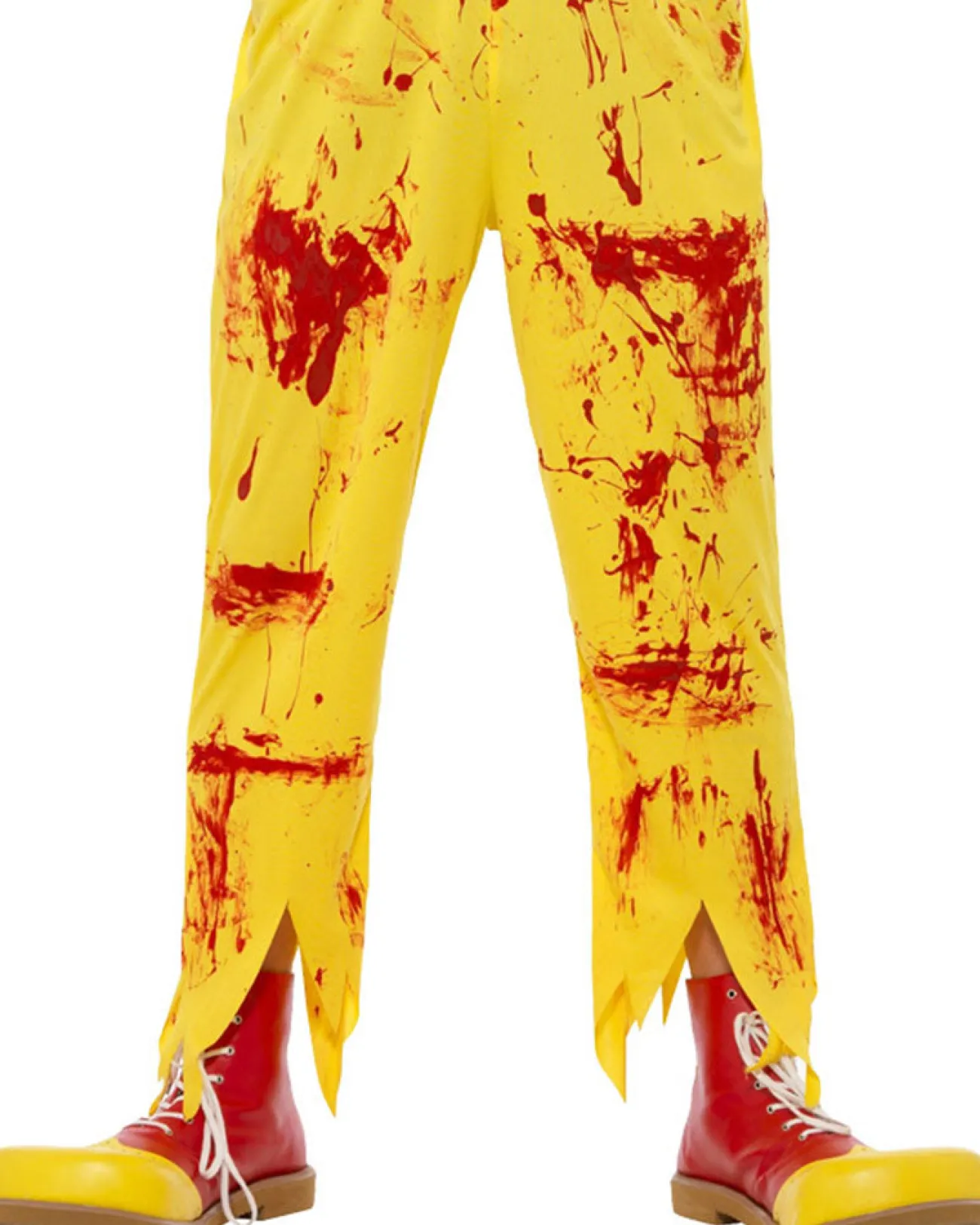 This Clown Is Not Here To Make You Laugh, He Will Not Make Balloon Animals For You And When You See Him At Your Birthday Party We Suggest You Run As Fast As You Can, Without Looking Back. Give The Trick-Or-Treaters Something To Really Scream About When You Wear This Not So Amusing Fast Food Kreepy Killer Clown Mens Costume. This Scary Costume Is A Jumpsuit Featuring A Pair Of Yellow Overalls With Two Red Buttons On The Front, Splattered With Blood And Ripped Edging Along The Hem Of The Pants And An Attached Red And White Striped Long Sleeve Top Also Splattered In Blood And Ripped Edging On The Cuffs. Pop A Clown Wig On, A Pair Of Goofy Clown Shoes And Perhaps A Weapon To Really Cause Terror. A Creepy Clown Approaching Your Fast Food Party With A Colourful Weapon Is Sure To Cause Anyone To Run For Their Lives And Leave Their Burgers Untouched.