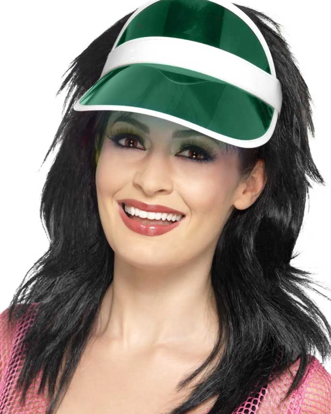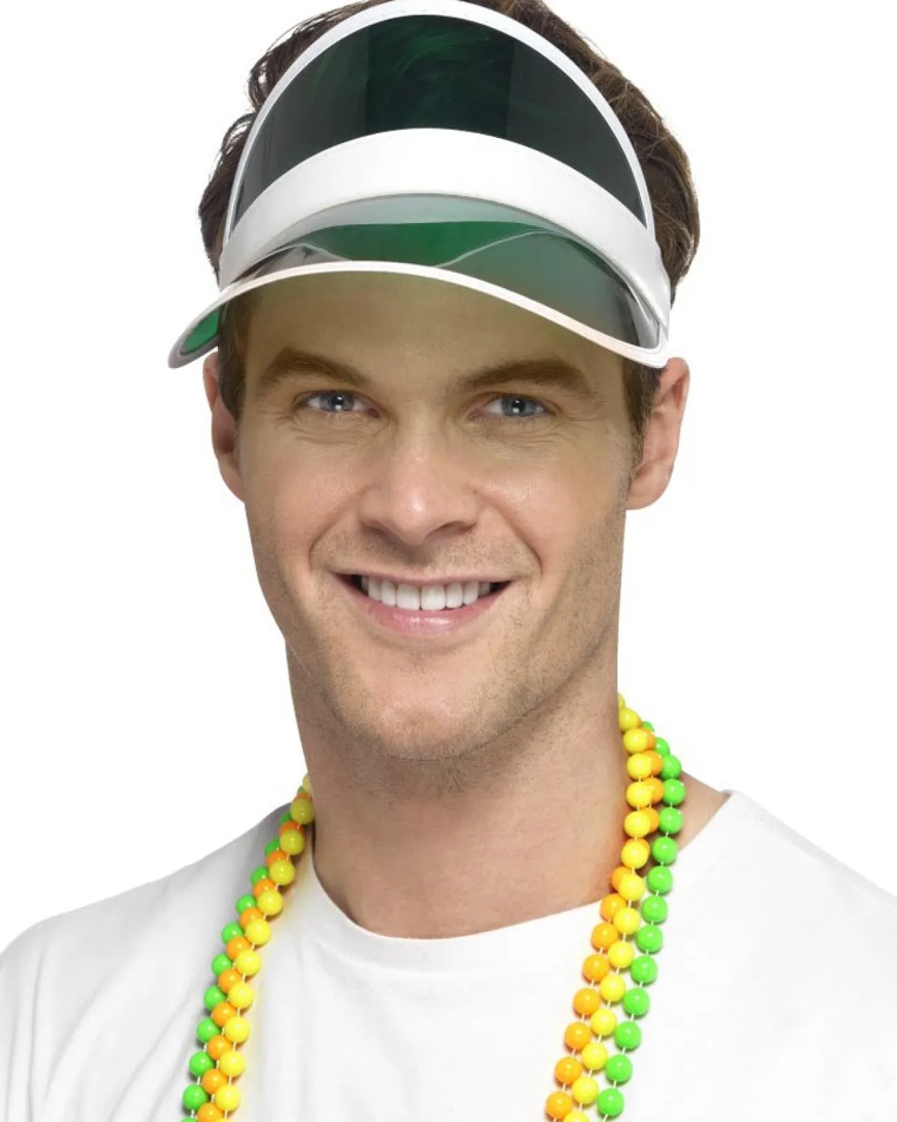 Have Fun In The Sun, 80S Style In This Green 80S Sun Visor. The Visor Is Made Of Translucent Green Plastic With White Trim And Band.