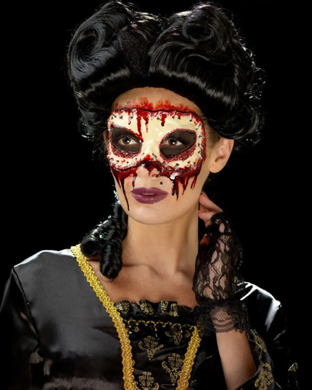 Take Your Face Off With Our Masquerade Faceoff Prosthetic. Be The Belle Of The Halloween Ball In This Masquerade Prosthetic. Brilliant For Finishing Up Your Undead Halloween Party Costume! Featuring A Fantastic Yet Spooky Masquerade Eye Prosthetic Ideal For Halloween As It Provides The Effect That Your Skin Has Been Ripped Off With Only Bone Showing And Remedied By White Stitches. It Just Sits On Your Face Where An Eye Mask Would By Just Adding Adhesive To Ensure It Sticks! Be Sure To Check Out Our Fake Blood And Black Make Up To Complete The Look!