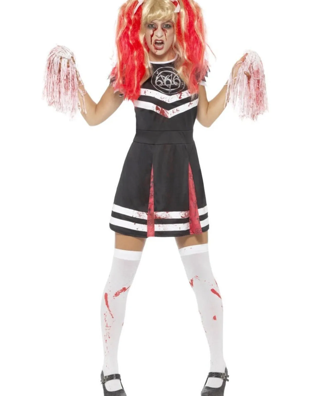 This Satanic Cheerleader Womens Costume Is Perfect For Those Who’Ve Accidentally (Or Intentionally) Declared Their Worship For The Devil During Their High School Pep Rally. This Gruesome Costume Comes Complete With A Black Cheerleader’s Dress With White Bands Across The Chest And Bottom Of The Skirt, As Well As Blood Splatter Detail In The Pleats Of The Skirt And Scattered Across The White Bands. To Complete The Dress, A Printed Pentagram Is On The Chest With The Numbers “666” Over The Top, As Well As A Pair Of White Pom Poms With Added Bloodstain Detail. Perfect For Your Next Halloween Party.