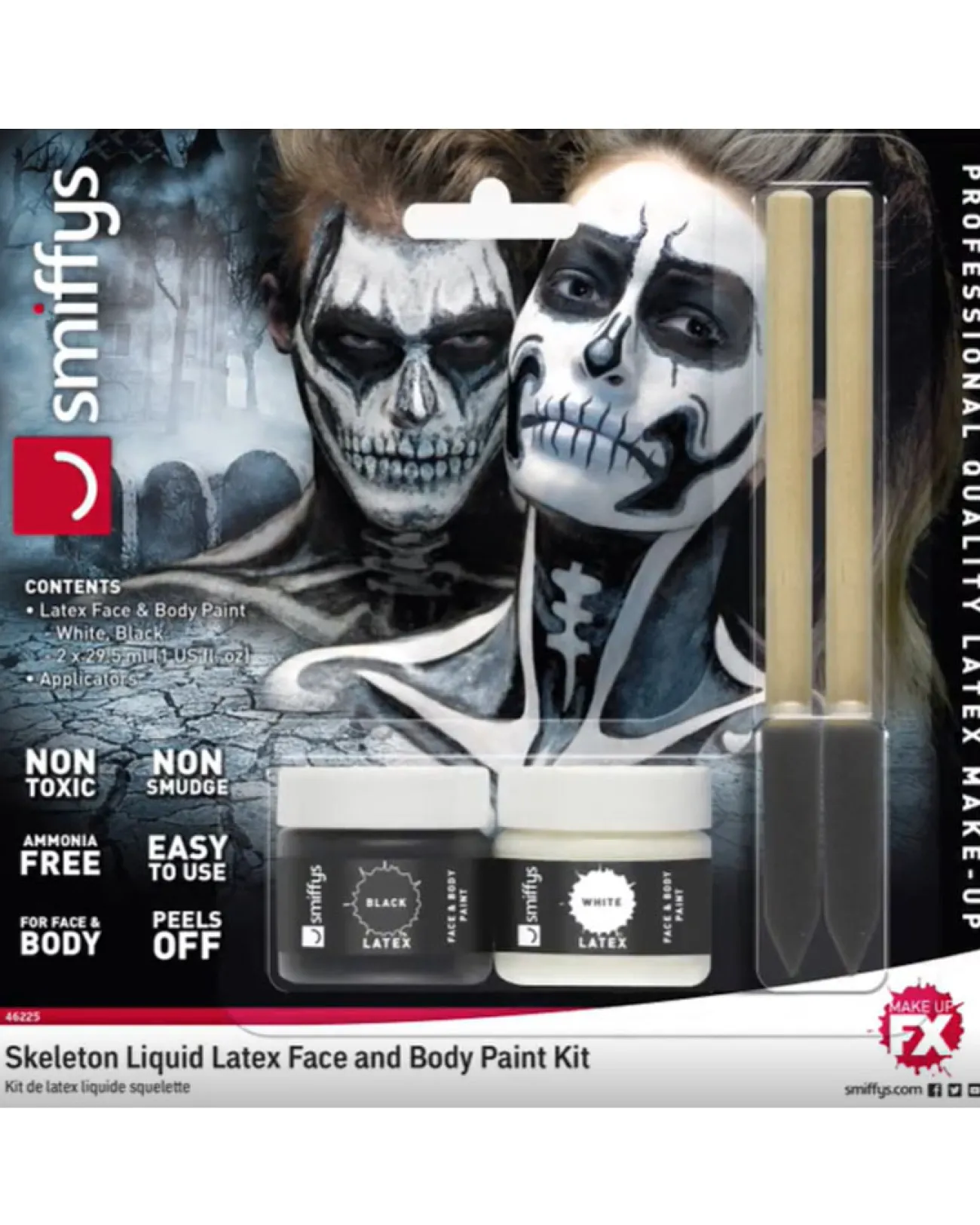 Completely Customise Your Skeleton Outfit With This Skeleton Liquid Latex Kit For Your Skeleton Makeup. The Kit Comes With One Pot Of Black Liquid Latex And One Pot Of White Liquid Latex So You Can Design Your Skeleton Look With A 3D Effect. Also Included Are Two Sponge Applicators To Help. Combine This Kit With Some Extra Black And White Face Paint To Complete Your Look.
