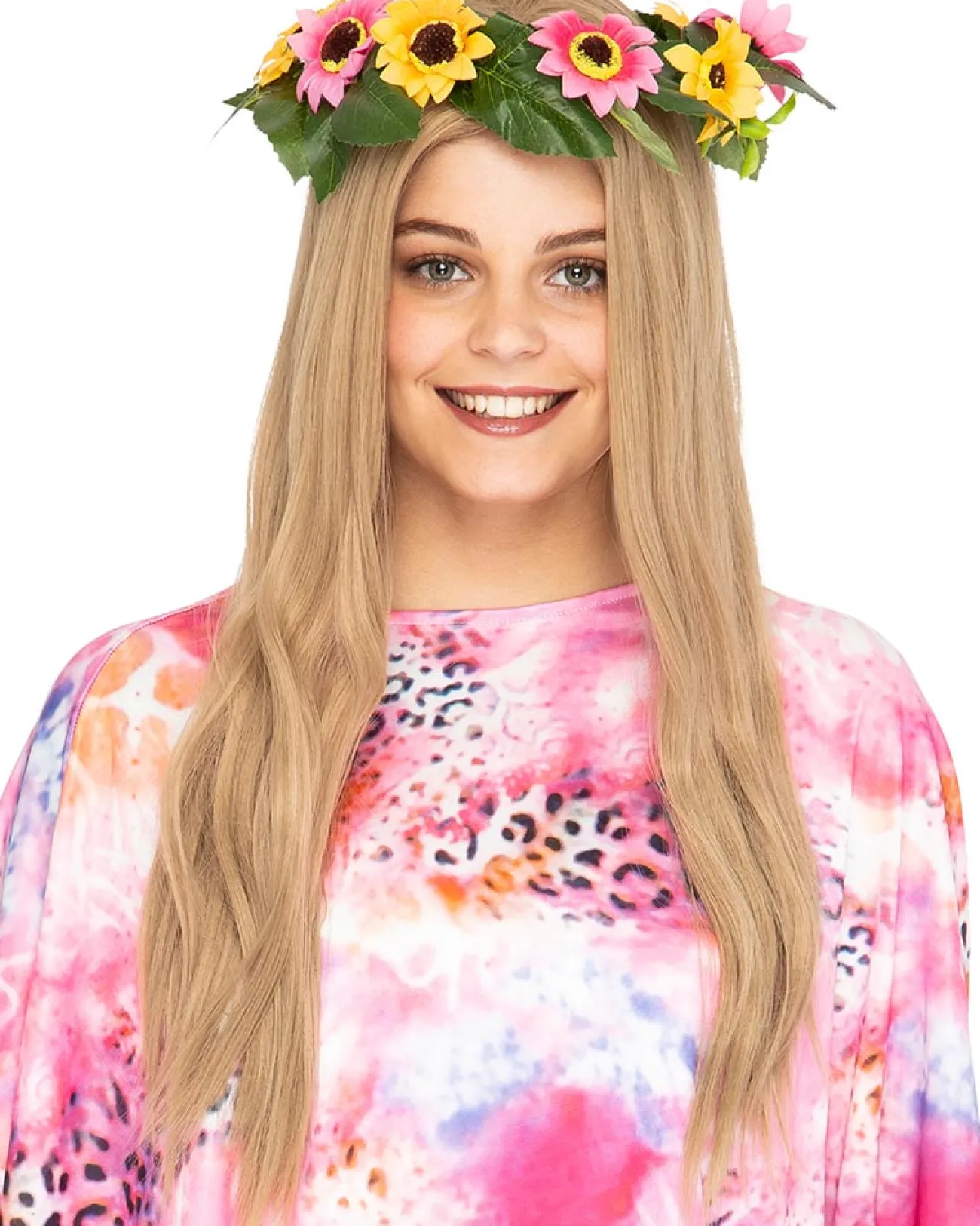 Did She Kill Him Or Not? That Is The Question Of The Decade. Don This Tiger Carole Wig And Crown Kit To Complete Your Crazy Cat Lady, Carole Baskin Costume For Your Next Tiger King Party. This Wig And Crown Set Works Really Well For 60S Or Hippie Parties As Well. The Wig Comes In A Long, Straight Dirty Blonde Style With A Middle Parting. Simply Add The Included Pink And Orange Flower Crown Featuring Green Leaf Deatil And Ribbon Ties, And Your Look Is Complete. Wear A Wig Cap For Added Comfort And To Keep Your Own Hair Under Wraps.