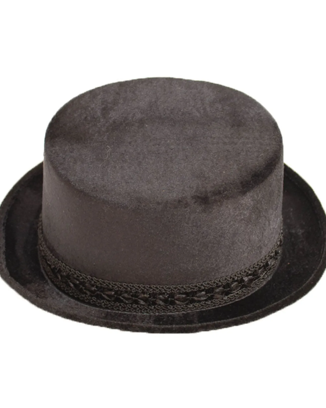 Look Smart And Sophisticated With This Round Black Velvet Top Hat. This Velvet Top Hat Is Black And Looks Great With Any Historical, Burlesque Or Gentlemen Costumes.